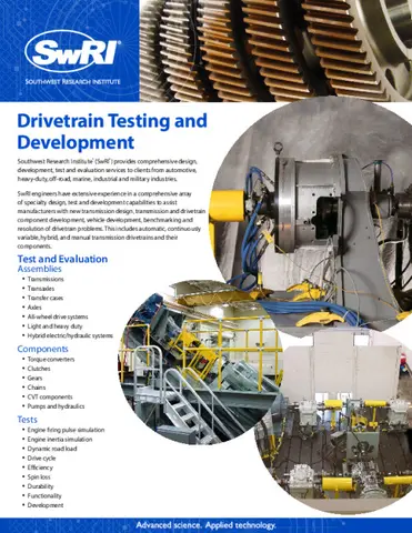 At Southwest Research Institute (SwRI), we provide cutting-edge driveline testing and research solutions to help OEMs and industry leaders maximize their products. Our engineering experts support your product’s success with comprehensive testing, innovative research, and advanced engineering solutions.