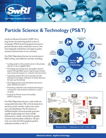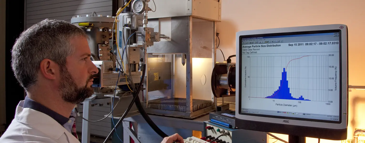 Our staff have a broad range of capabilities for understanding and measuring exhaust particulate mass, number and size distributions in ranges of fine (< 2,500 nm or 2.5 μm), ultrafine (< 100 nm, 0.1 μm), and nanoparticles (< 50 nm, 0.05 μm). We perform both filter-based measurement of total particulate mass emissions conforming to the latest USCFR Part 1065 particulate mass and EU solid particle number sampling protocols. We also use a suite of particle measurement instruments to cover a wide range of particle diameters from 3 to 18,000 nm.