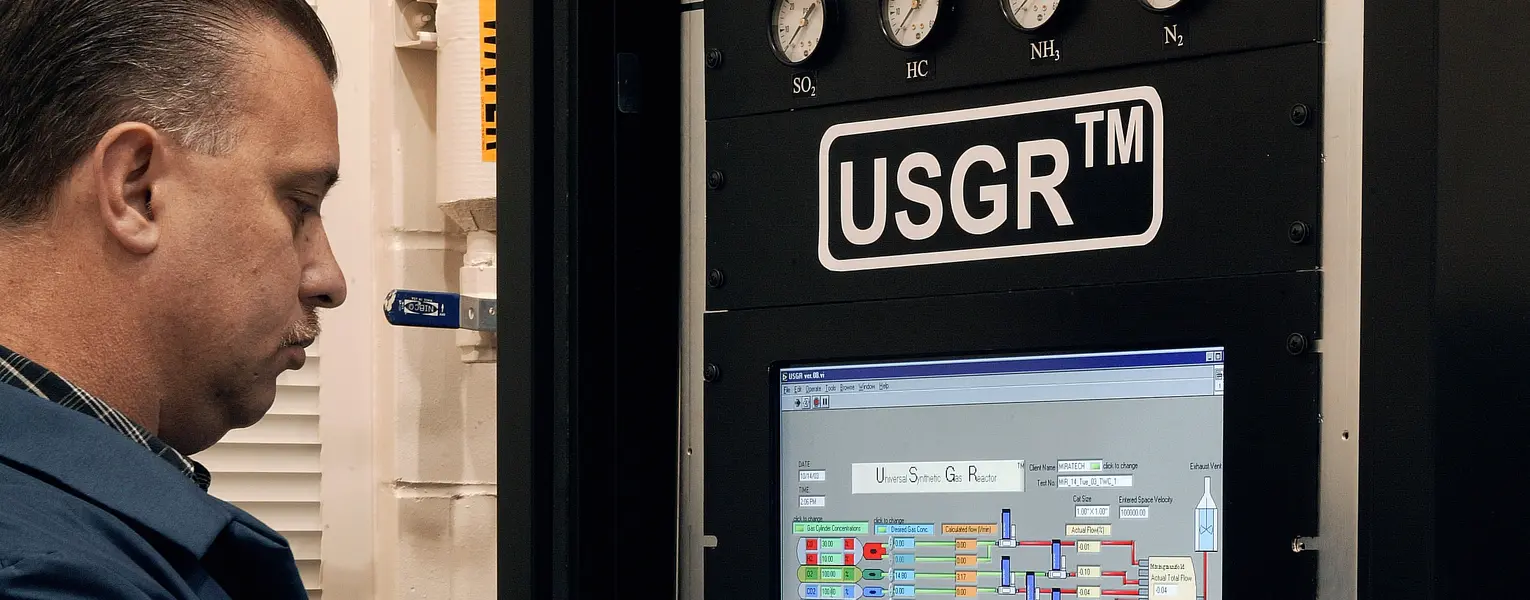 Emissions of carbon monoxide (CO), oxides of nitrogen (NOx), unburnt hydrocarbons and particulate matter are controlled in either the automotive combustion system or the aftertreatment system. SwRI develops analytical solutions for individual catalyst components, full-size exhaust aftertreatment systems, and related emissions control technologies.