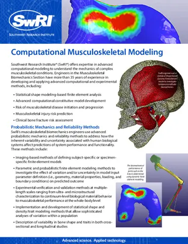 To understand the mechanics of complex musculoskeletal conditions staff at Southwest Research Institute (SwRI) develop and apply advanced computational methods, including: