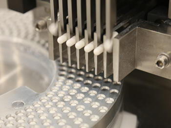 Capsule filler machine sorting doses of active pharmaceutical ingredients (API).