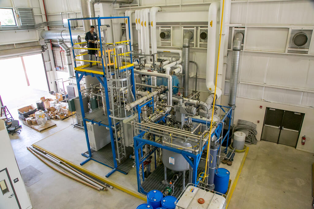 Four-story, outdoor R&D pilot plant for hydrogen research.