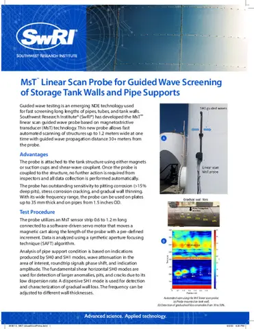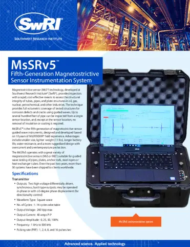 We have pioneered magnetostrictive sensor technology, which continues to gain international prominence, and have recently upgraded our latest system, the MsSR™ 3030and the MsSRv5, which uses acoustic guided waves to detect flaws in: