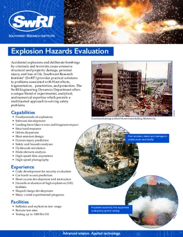 Accidental explosions and deliberate bombings by criminals and terrorists cause extensive structural and property damage, personal injury and loss of life. We evaluate blast effects and hazards, foreign object damage, armor and ballistic impacts and more.