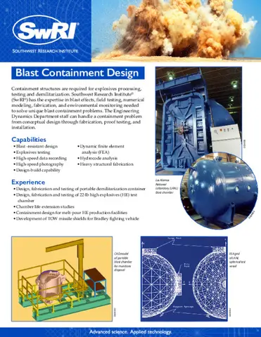 - Design, fabrication, and testing of 22-lb high-explosives (HE) test chamber