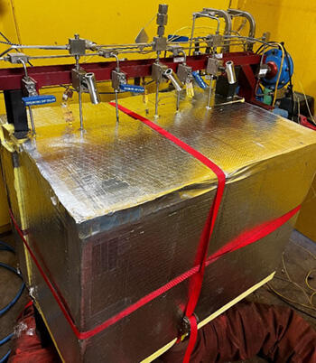 Heating or cooling of the stands is performed locally using an insulated enclosure (Figure 3) with an environmental control unit, a convection oven, heat trace, or exposure to chilled water or liquid nitrogen. This specific setup allowed the operator to perform Backflow Integrity Testing per API 19G2, Annex H at both maximum rated temperature and pressure within one of SwRI’s test cells.