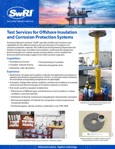 - Test services for offshore insulation and corrosion protection systems