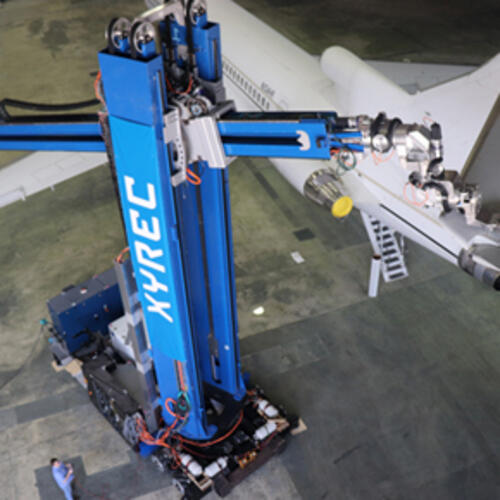 How we built a 20-ton, five-story robot that uses a 20kW laser to remove paint from commercial aircraft.