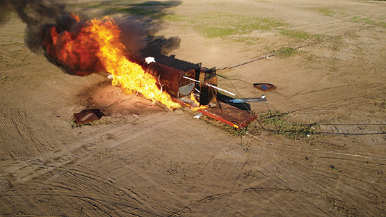 SwRI exposed a cryogenic storage tank filled with liquid natural gas to a pool fire, demonstrating that its pressure release system performed as designed, maintaining tank integrity.