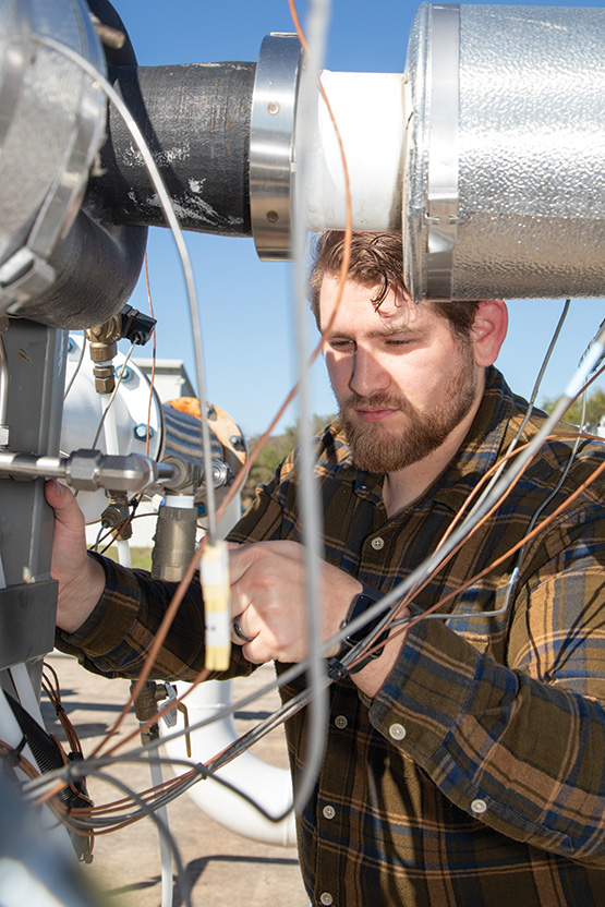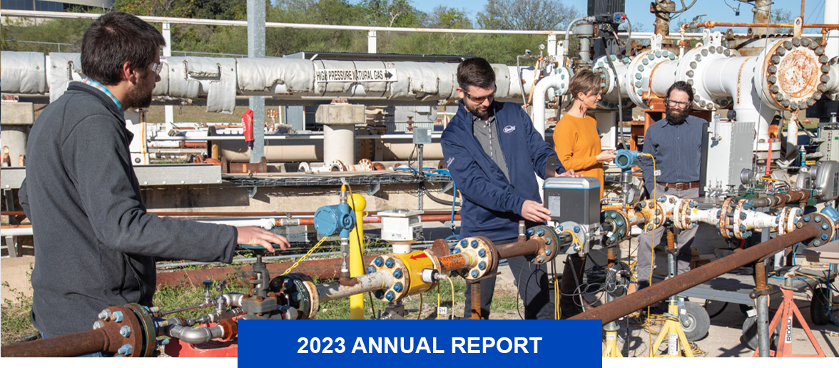 In 2023, SwRI also investigated using existing natural gas distribution infrastructure to supply homes and businesses with natural gas blended with carbon-neutral hydrogen, as gas companies propose using these gas blends in the next decade. Because the density of the resulting blends would be significantly different than natural gas alone, flow meters calibrated to measure natural gas will have some error when measuring blended gases. It is critical to accurately quantify the energy transferred from the gas distribution companies to individual customers once hydrogen is added. In 2023, SwRI assessed the performance of four common flow meters using blended gas, measuring the density and energy content of the blends at common temperatures and pressures.