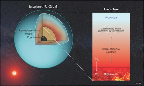 April 15, 2025 — A Southwest Research Institute-led study modeled the chemistry of TOI-270 d, an exoplanet between Earth and Neptune in size, finding evidence that it could be a giant rocky planet shrouded in a thick, hot atmosphere. TOI-270 d is only 73 light years from Earth and could serve as a “Rosetta Stone” for understanding an entire class of new planets.
