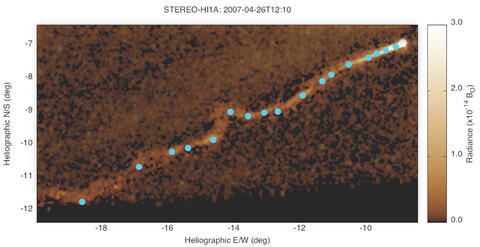 Using the Heliospheric imager onboard STEREO, scientists studied the movements of hundreds of dense “clumps” of glowing, ionized gas within the ribbon of Comet Encke’s tail, which passed by STEREO in 2007. Fluctuations in the solar wind are mirrored in changes in the tail. By tracking these clumps, scientists were able to reconstruct the motion of the solar wind, catching an unprecedented look at its turbulence.
