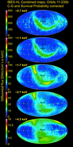 IBEX creates images of energetic neutral atoms (ENAs) to make visible the invisible energetic interactions at the edge of the solar system. In the paper “IBEX: The First Five Years (2009–2013),” published this month by The Astrophysical Journal Supplement Series, the science team summarized its first five years of accomplishments, including the first five years of maps showing interactions at the edge of the solar system, a trove of data in multiple formats, and aspects of data analysis and the methods used to refine them.