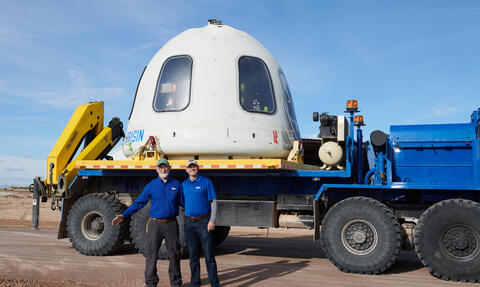 October 13, 2020 — Two Southwest Research Institute (SwRI) experiments were aboard Blue Origin’s New Shepard suborbital rocket today, which launched from Van Horn, Texas. The Box of Rocks Experiment II (BORE II) tested a new technology for magnetically attaching to and sampling asteroids. The second experiment evaluated a tapered liquid acquisition device (LAD) designed to safely deliver liquid propellant to a rocket engine from fuel tanks.