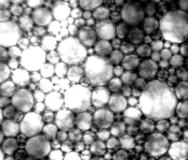 This magnified image of carbon dioxide foam illustrates important properties needed for a stable, viscous natural gas fracking foam.