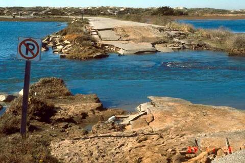 USGS/J.C. TinsleyLiquefaction and strong tidal action following the 1989 Loma Prieta earthquake destroyed a causeway in Watsonville, CA.