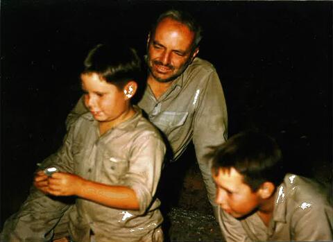 Tom Slick and sons, Chuck (left) and Tom (right) search for Bigfoot in the Pacific Northwest, circa 1960.