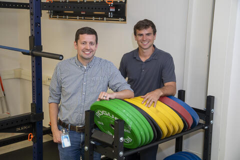 SwRI engineers Travis Eliason, left, and Ty Templin, right, both part of the ENABLE™ development team, envision applying the technology beyond athletics, extending to everyday use. The 3D motion analysis engine is already proving to be a useful tool for military and medical applications.