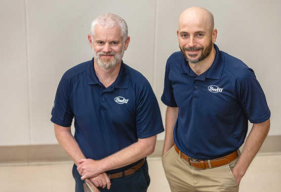 SwRI engineers Shane Siebenaler, left, and Justin Long created a data fusion tool in collaboration with the City of San Antonio to curb urban heat islands, which occur when dense concentrations of pavement and buildings absorb heat and raise surrounding temperatures.
