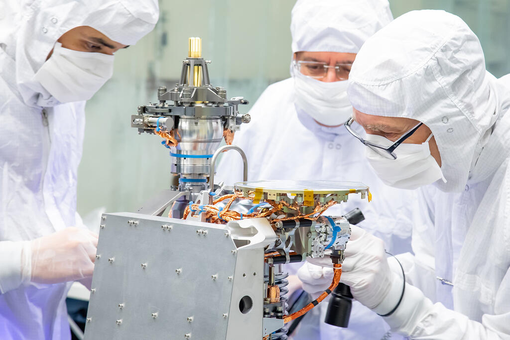 Many space instruments designed by SwRI and used for space missions were developed through the Institute’s Internal Research and Development (IR&D) Program. The MAss Spectrometer for Planetary Exploration or MASPEX, shown here during assembly in a clean room, is heading to Jupiter’s moon Europa as part of NASA’s Europa Clipper mission where the instrument will study the moon’s atmospheric gases and surface materials.