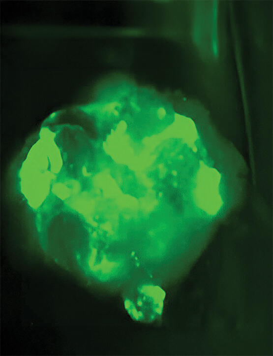 Researchers at SwRI, UTSA and Texas Biomed used SwRI’s Rhodium software to identify viable compounds to treat emerging zoonotic pathogens, such as this Nipah virus infection growing in this humanized organoid. These emerging viral threats can jump from animals to humans, where they are particularly lethal.