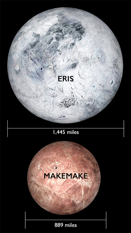 The Kuiper Belt is a vast donut-shaped region of icy bodies beyond the orbit of Neptune at the edge of the solar system. Eris and Makemake are comparable in size to Pluto and its moon Charon. These bodies likely formed early in the history of our solar system, about 4.5 billion years ago. Far from the heat of our Sun, KBOs were believed to be cold, inert objects — until now.