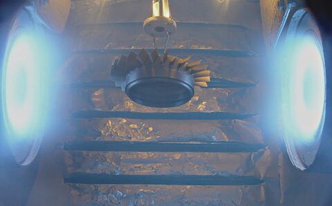 SwRI's PEMS technology is an advanced variation of the physical vapor deposition process by which coatings can be deposited on the surface of various components. The PEMS process introduces a global plasma, which allows a thorough cleaning of a component's surface to remove oxide and surface contaminants before the coating is applied, thus ensuring that the coating tightly adheres to the surface. During the process, this global plasma enhances the ion bombardment of the coating. As a result, very dense and very hard coatings can be achieved.
