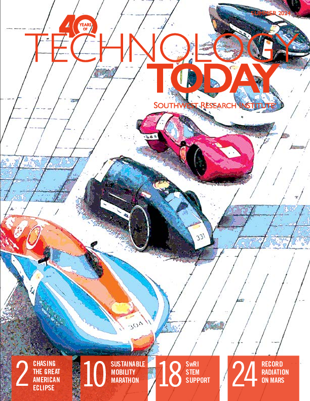 SwRI supports worldwide Shell Eco-Marathon (SEM) events, where novel student-built vehicles compete with sustainability instead of speed as the goal. The cover depicts the entries in the 2024 SEM Americas event held at the famous Indianapolis Motor Speedway in April.