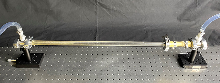 Figure 3: This experimental setup was used for testing the cooled hollow-core fibers with the 20 kW CO2 laser.