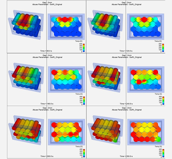 This project builds upon the mechanical abuse modeling capabilities developed in 03-R6001 and the thermal abuse modeling capabilities developed in 03-R8968 by combining these two approaches so that complete evaluations of damaged battery packs can be made to determine if resulting short-circuits will be safely contained or result in thermal runaway.