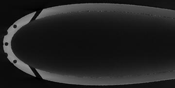 Figure 3: CT scan of additively manufactured Inconel strut shows clear holes and channels and no obvious deformities.