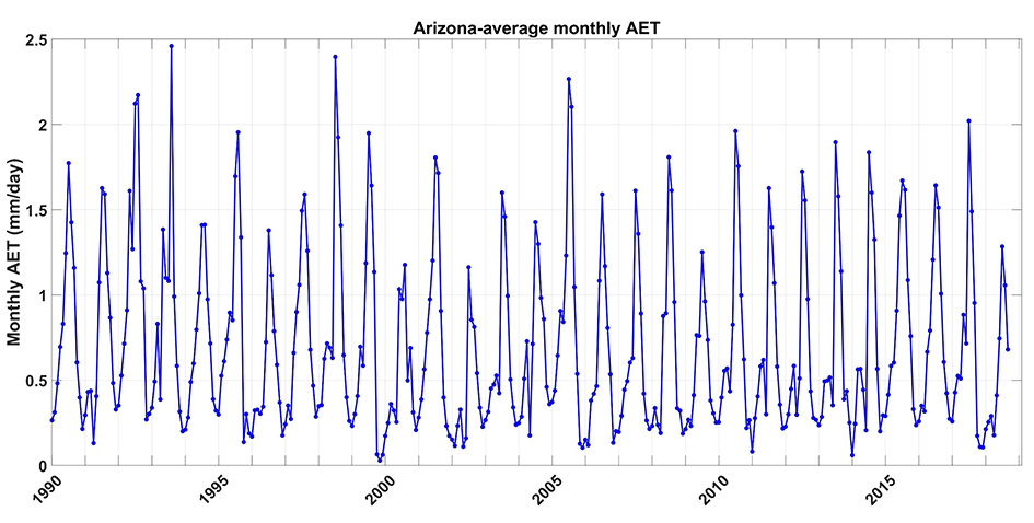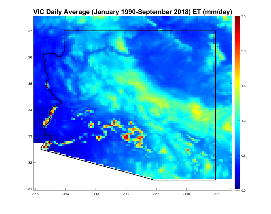 Figure 1: To date the team has modeled the rainfall patterns for Arizona in preparation for modeling the impact of a large artificial body of water on the pattern.